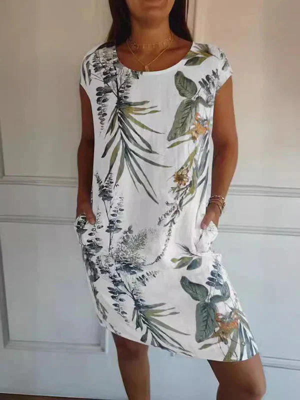1 * KlÀnning med rund hals och botaniskt tryck för kvinnor
